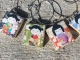 Reversible wine charms are set on Scrabble tiles that spell "ARIGATOU" (Thank You) on one side and feature colorful artwork of beautiful dolls in traditional kimonos on the other side. The tiles are coated with an epoxy glaze that provide durable protection and a glass-like finish. It's like getting two sets of wine charms for one price!